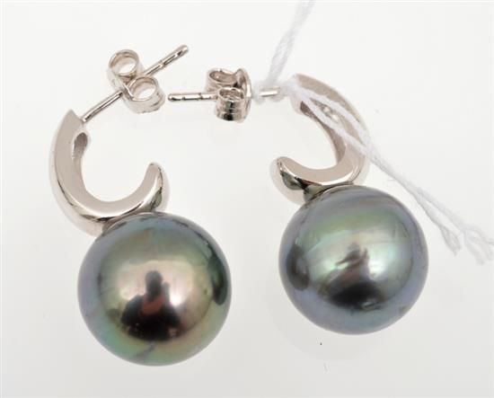 A PAIR OF TAHITIAN PEARL EARRINGS, IN STERLING SILVER