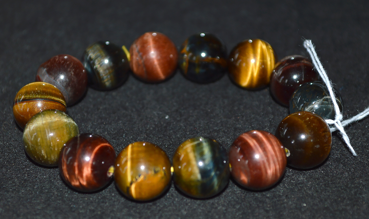 A TIGERS EYE BEADED NECKLACE WITH A TIGERS EYE AND HAWKS EYE BEADED BRACELET