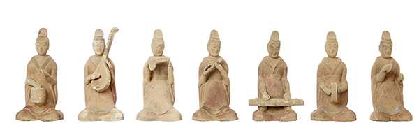 A GROUP OF SEVEN CHINESE POTTERY FIGURES