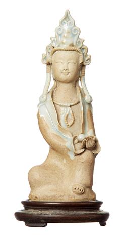 A CHINESE QINGBAI PORCELAIN GUANYIN FIGURE, YUAN DYNASTY