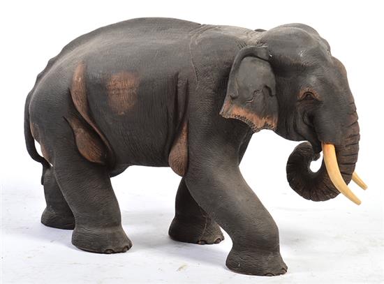 A LARGE LIFELIKE CARVING OF A CHINESE ELEPHANT
