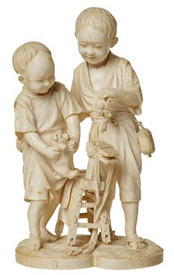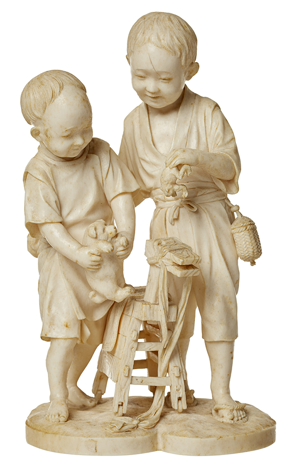 A 19TH CENTURY KYOTO SCHOOL IVORY OKIMONO OF TWO BOYS, MEIJI PERIOD