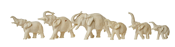 A PROSESSION OF SIX CARVED IVORY ELLEPHANT FIGURES