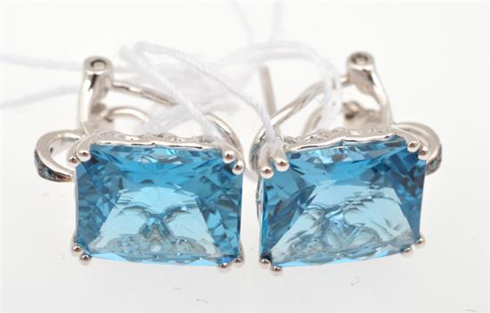 A PAIR OF TOPAZ AND BLUE DIAMOND EARRINGS IN 14CT WHITE GOLD