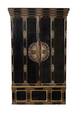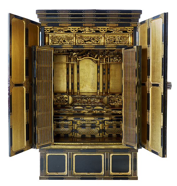 A EARLY 20TH CENTURY FINE JAPANESE BLACK AND GOLD LACQUER SHRINE CABINET, MEIJI/TAISHO PERIOD
