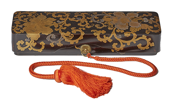 With Flowers and Karakusa (scrolling grasses) on a ro-iro ground, 23 x 3.5cm.