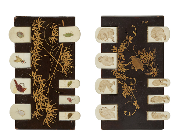 PAIR OF LACQUER SHIBAYAMA AND IVORY WHIST COUNTERS