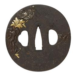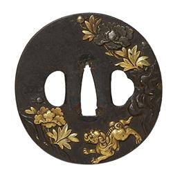 A 19TH/20TH CENTURY GILT BRONZE TSUBA MEIJI PERIOD