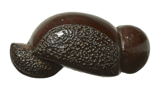 Of chestnut form, with an articulated ivory worm in hole, 4.5cm wide