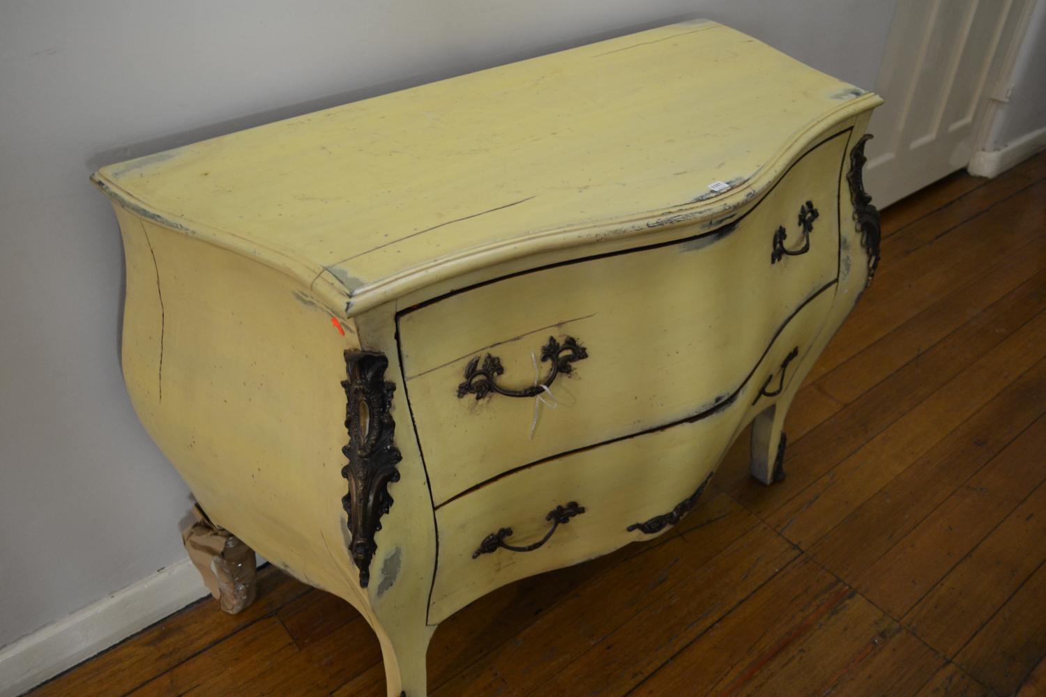 LOUIS XV STYLE GILT METAL MOUNTED PAINTED COMMODE