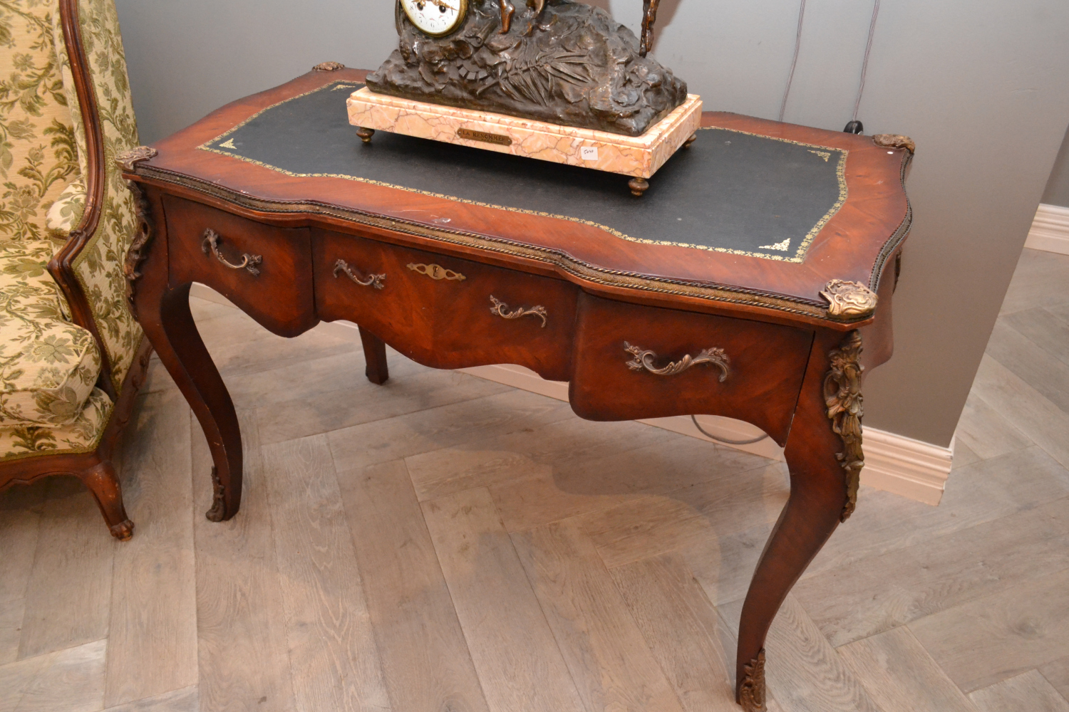 LOUIS XV STYLE GILT METAL MOUNTED BUREAU PLAT, LEATHER INSET TOP