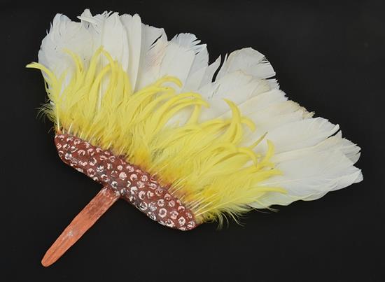 AN ABORIGINAL FEATHER AND CLAY DANCE WAND