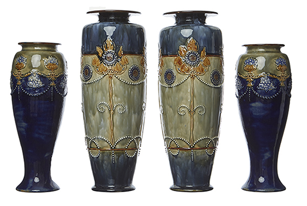 The sunflower vases signed LP for Lily Partington, the others marked NN and HD, 30cm and 36cm high (4).