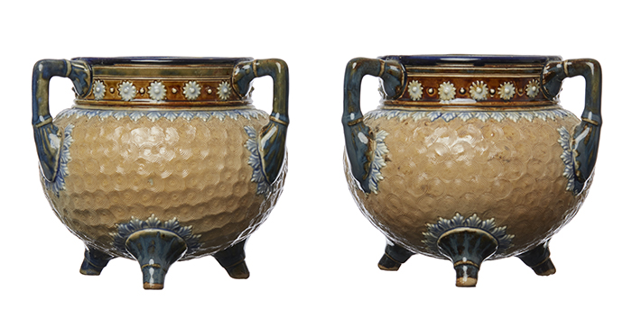 A PAIR OF ROYAL DOULTON CAULDRON FORM JARDINIERES, CIRCA 1910