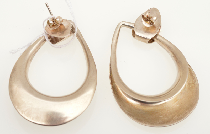 A PAIR OF STYLISED DROP EARRINGS, IN STERLING SILVER