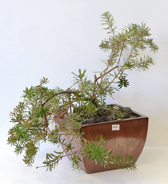 SMALL BONSAI IN DEEP BURNT ORANGE PLANTER
