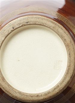 Notes: The use of negative space and a high fired glaze technique in this piece reflect external influence. It has been suggested that works such as this were produced in line with the travels of Christopher Dresser in the 19th Century.