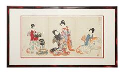 Depicting four ladies in a dressing room, each panel Oban size, 23 x 35cm.