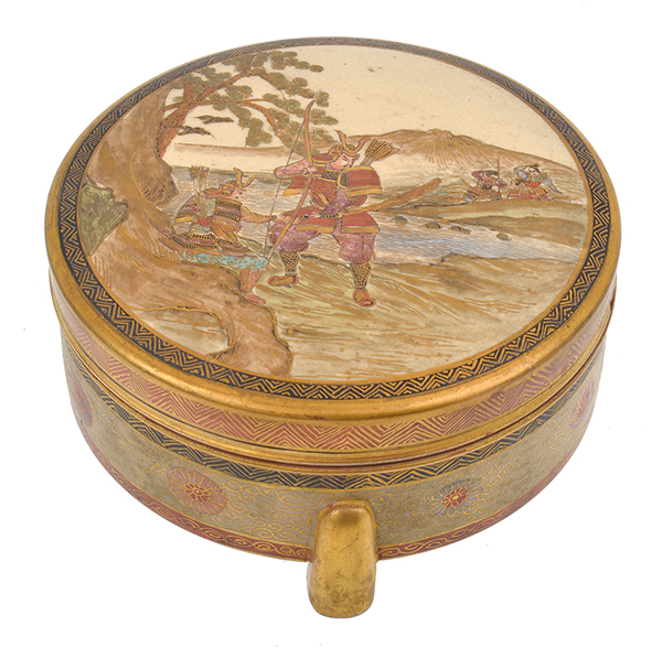 A 20TH CENTURY JAPANESE SATSUMA LIDDED DISH, MEIJI PERIOD