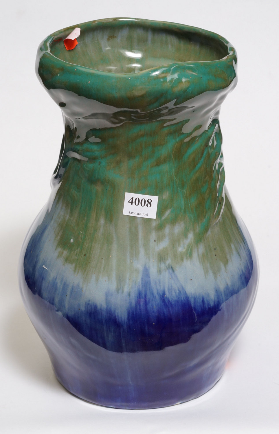 baluster shaped Cruffel porcelain vase moulded with windswept tree motifs, blue and green glaze, original paper label Cruffel Art Porcelain, Melbourne to base, 28cm high