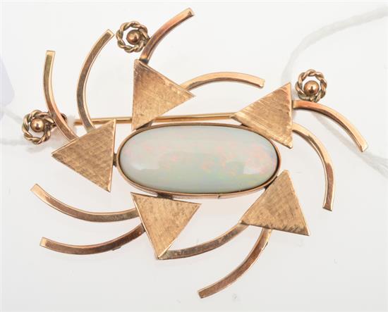 A RETRO OPAL BROOCH IN 9CT GOLD