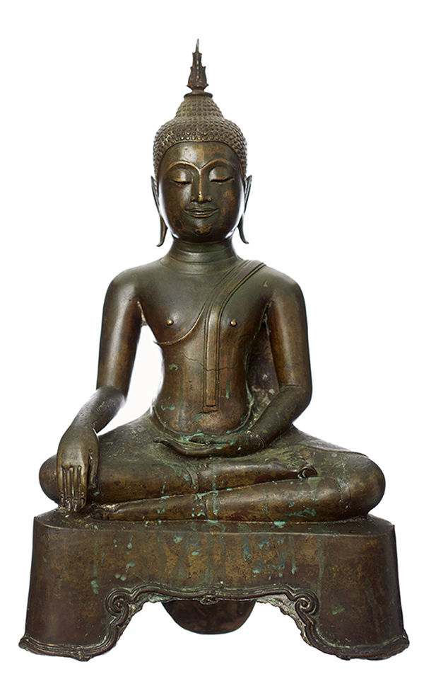 A LARGE SEATED BRONZE BUDDHA, AYUTTHAYA