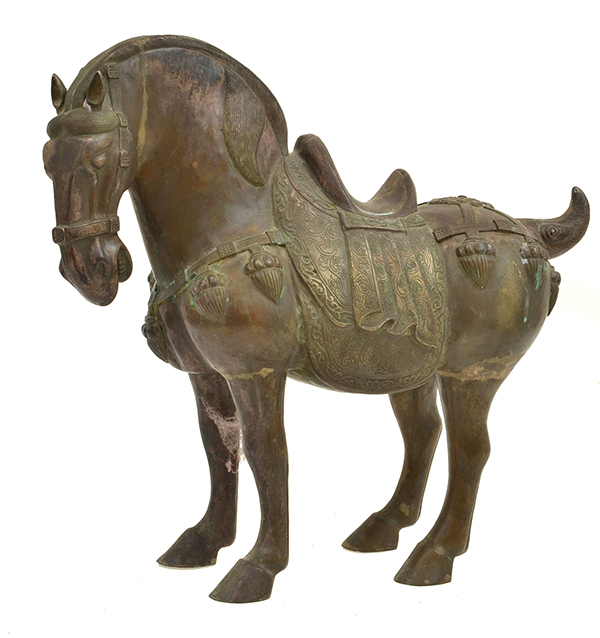 A LARGE CHINESE POTTERY FIGURE OF A GROOMING COURT LADY TANG DYNASTY (618-906)