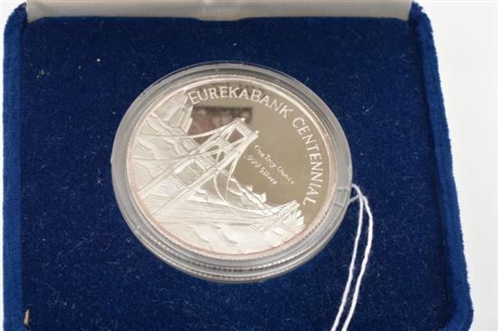 A SILVER COIN COMMEMORATING EUREKABANK CENTENNIAL 1990, WITH BOX