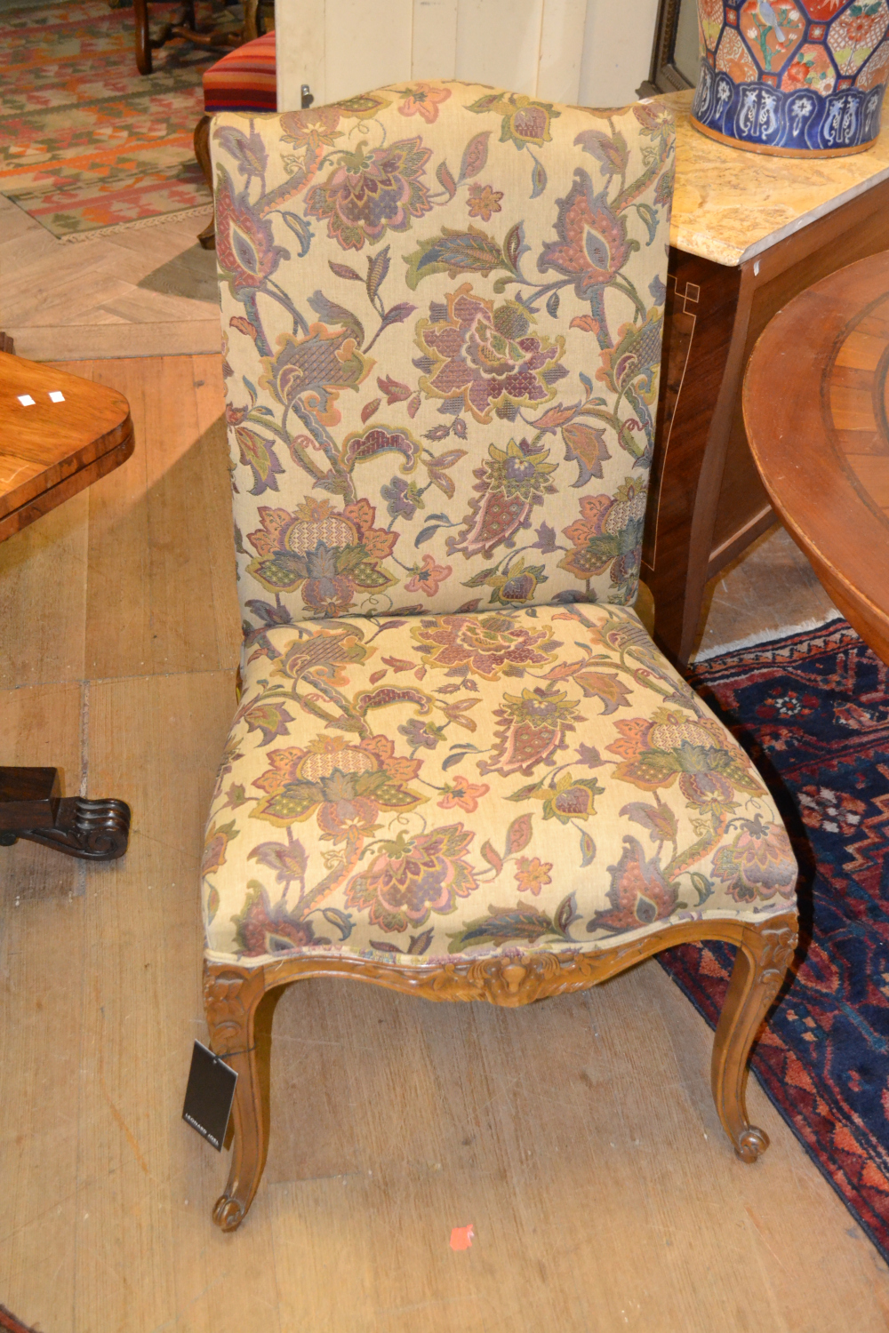 A SET OF FOUR FRENCH PROVINCIAL STYLE FLORAL UPHOLSTERED HIGH-BACK CHAIRS