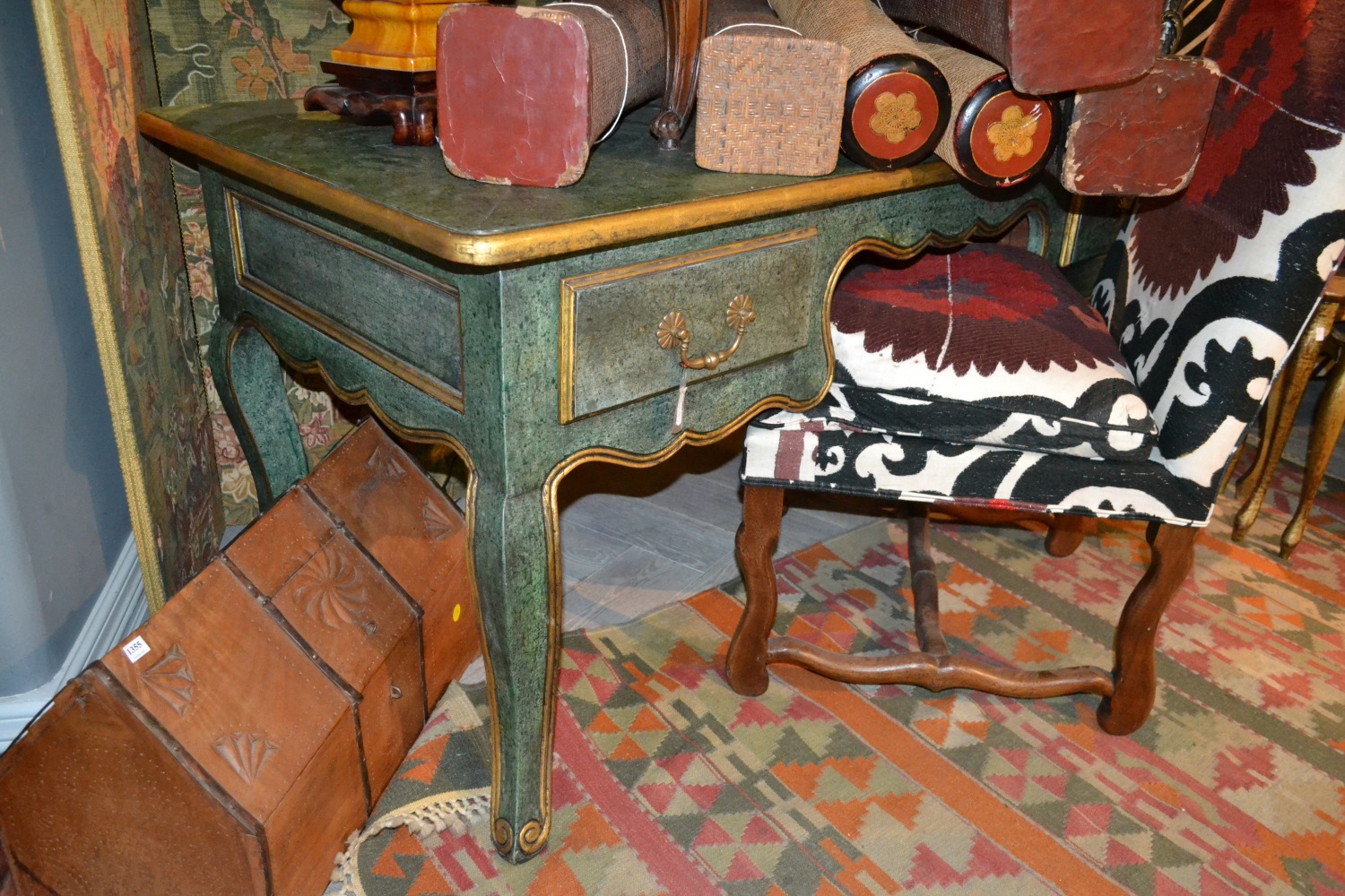 A LOUIS XV STYLE PAINTED BUREAU PLAT