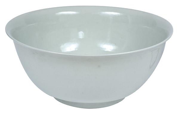 TWO SUBSTANTIAL BLANC DE CHINE GLAZED EARTHENWARE BOWLS