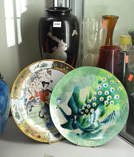 A COLLECTION OF JAPANESE WARE, INCL. A CLOISSONE PLATE, LACQUER VASE, ETC