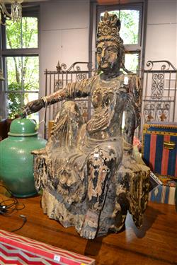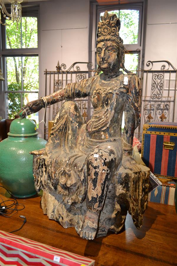 A CHINESE CARVED WOODEN FIGURE OF GUANYIN