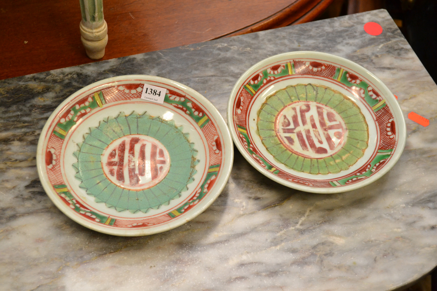 pair of Chinese polychrome enamelled plates. 19.5 cm diameter