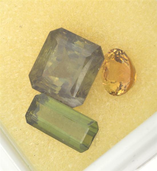 A COLLECTION OF THREE STONES, INCLUDING ZOISITE AND OLIVINE