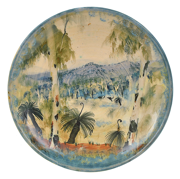 depicting an Australian landscape, incised T.P. AMB, 22.4cm diameter