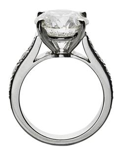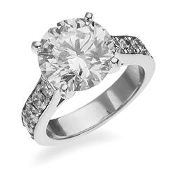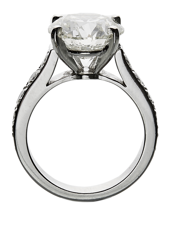 Centrally set with a round brilliant cut diamond of 5.10cts, flanked by further round brilliant cut diamonds totalling 0.90cts, mounted in 14ct white gold, ring size L-M.