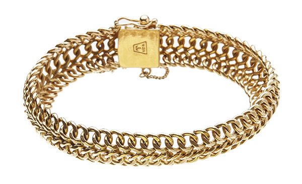 The fancy link bracelet in 18ct gold, total length 185mm.