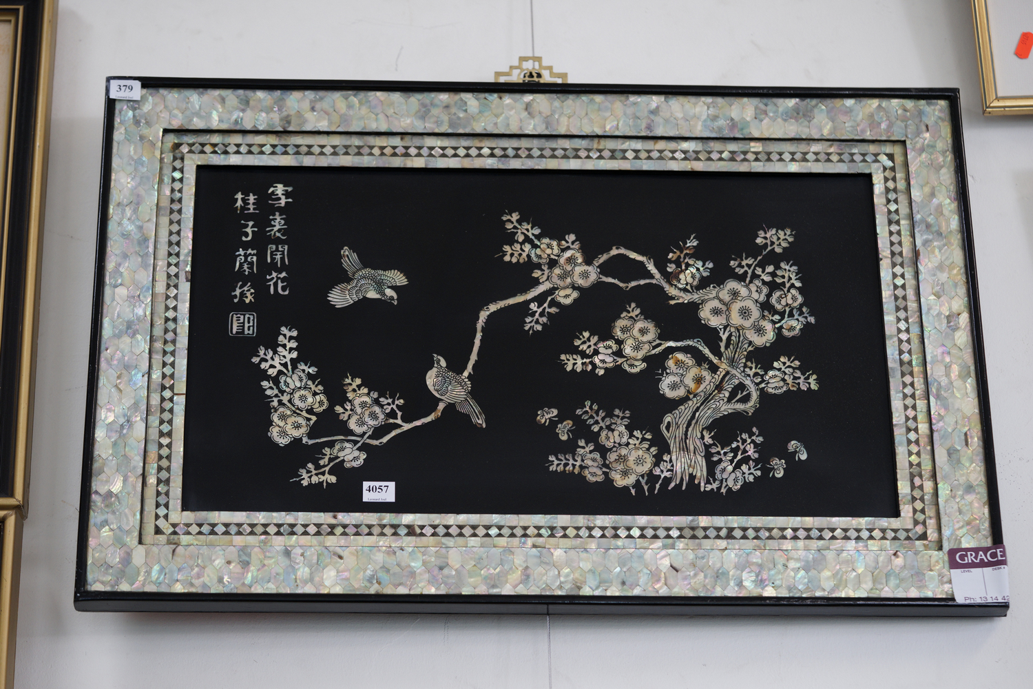 A CHINESE MOTHER OF PEARL INLAID PLAQUE
