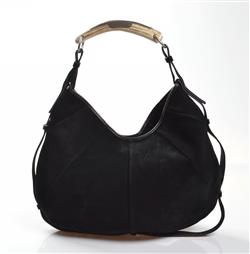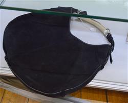 Styled in black suede with a faux bone handle, 43 x 28cm.