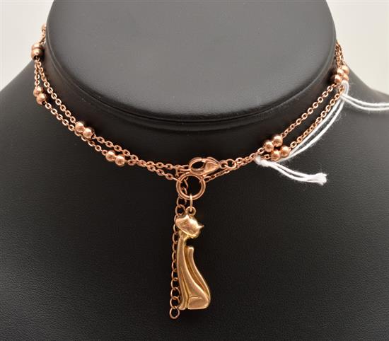 A CAT PENDANT IN 9CT GOLD, TO A ROLLED ROSE GOLD CHAIN A/F