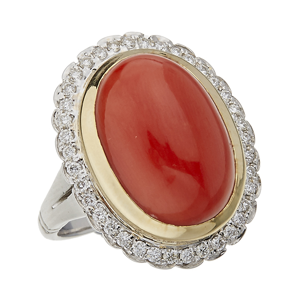 A CORAL AND DIAMOND RING