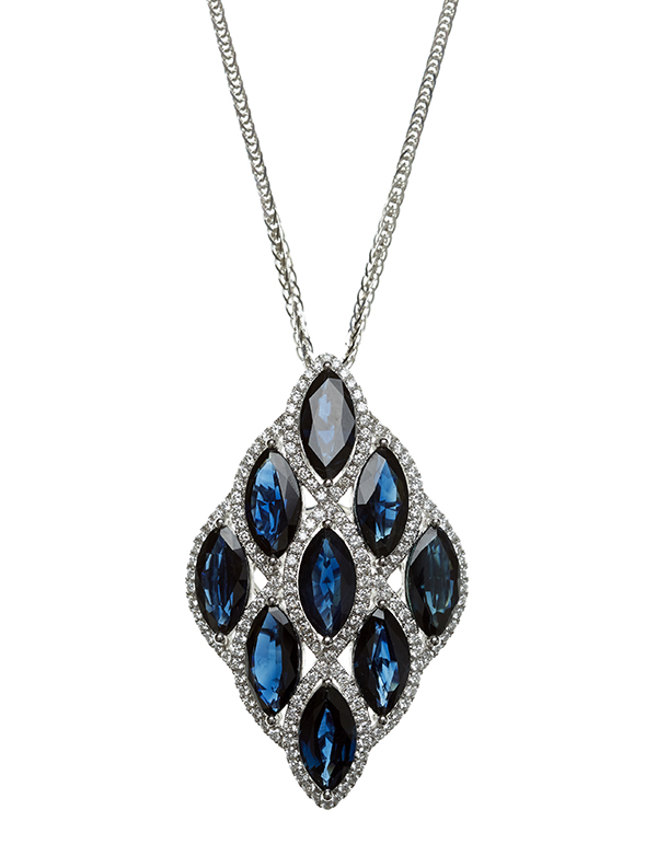 Featuring nine marquise cut sapphires, highlighted throughout with round brilliant cut diamonds, mounted in 18ct white gold, total length 600mm.