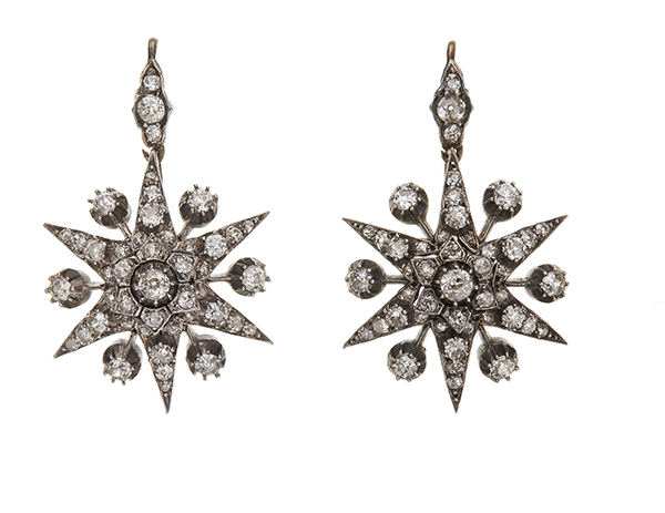 A PAIR OF VICTORIAN DIAMOND STARBURST EARRINGS