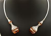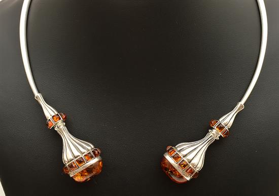 A CHOKER WITH AMBER SET ENDS, IN STERLING SILVER