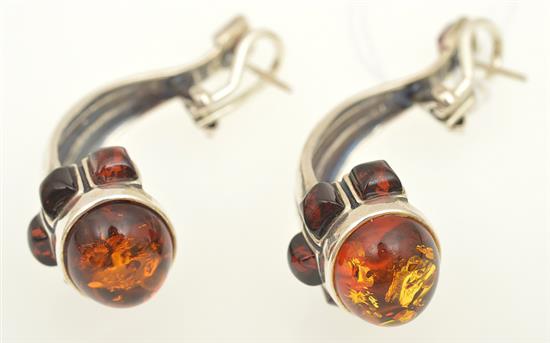 A PAIR OF AMBER EARRINGS, IN SILVER
