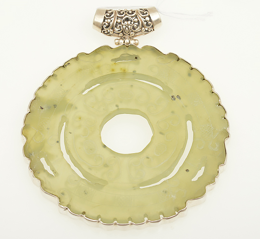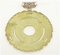 A LARGE ROUND GREEN PIERCED PENDANT