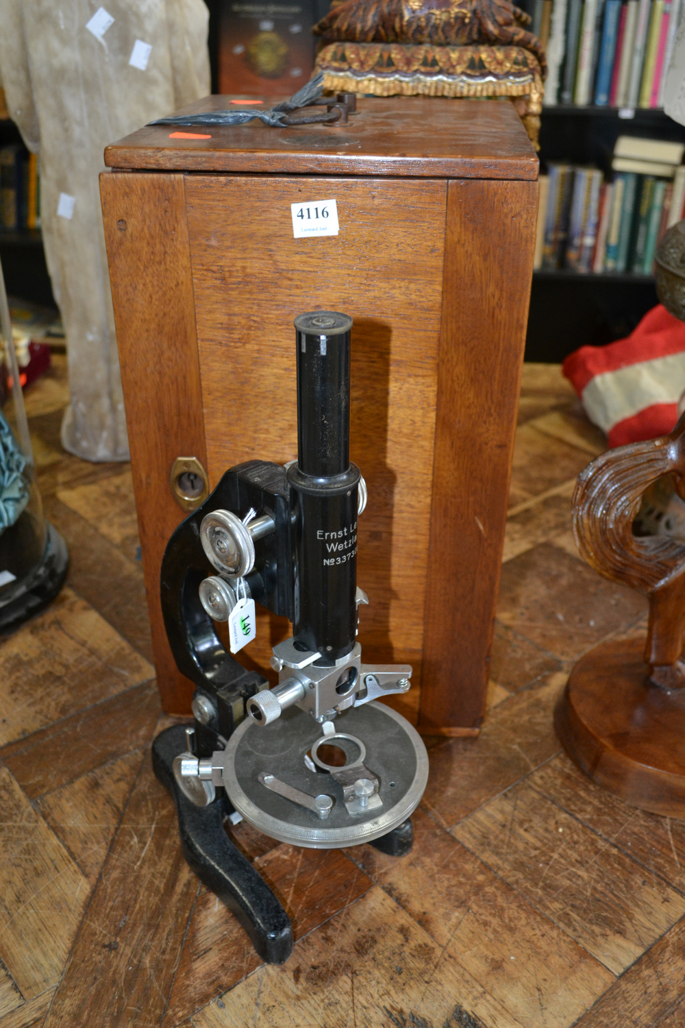 black iron limb and foot, no. 337302, housed in portable wooden case with accessories, retailed by Otto Pfeiffer, the case 42 x 24cm (key)