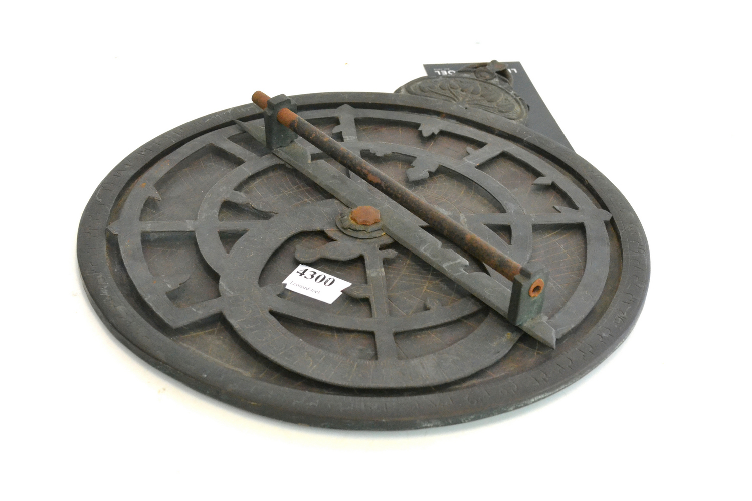handmade bronze astrolabe with pierced and engraved rete and handled adilade, foliate decorated art nouveau style thone with suspension loop, 26cm diameter