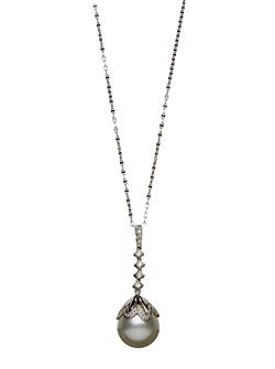 A PEARL AND DIAMOND PENDANT NECKLACE